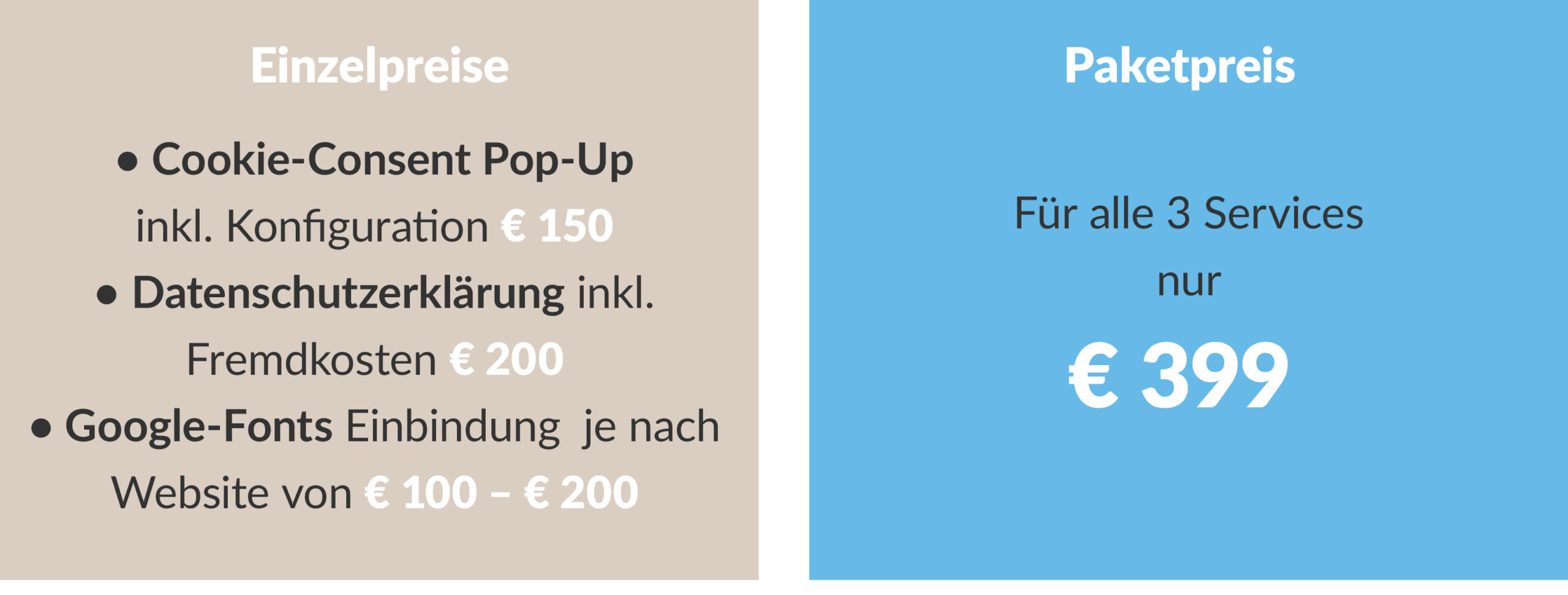 Sie sollten nun dringend die Nutzung von Google Fonts auf Ihren Internetseiten überprüfen. Sofern Sie aktuell Google Fonts dynamisch einbinden, sollten Sie diese unverzüglich in eine lokale Nutzung abändern. Das erledigen wir gerne für Sie.